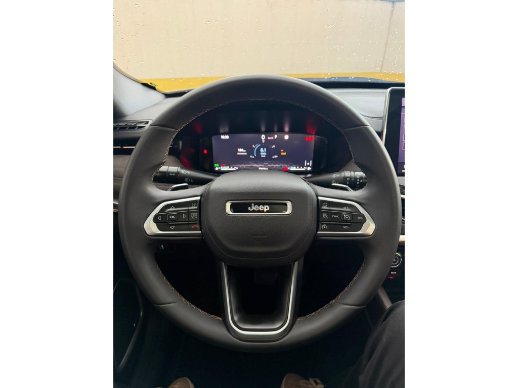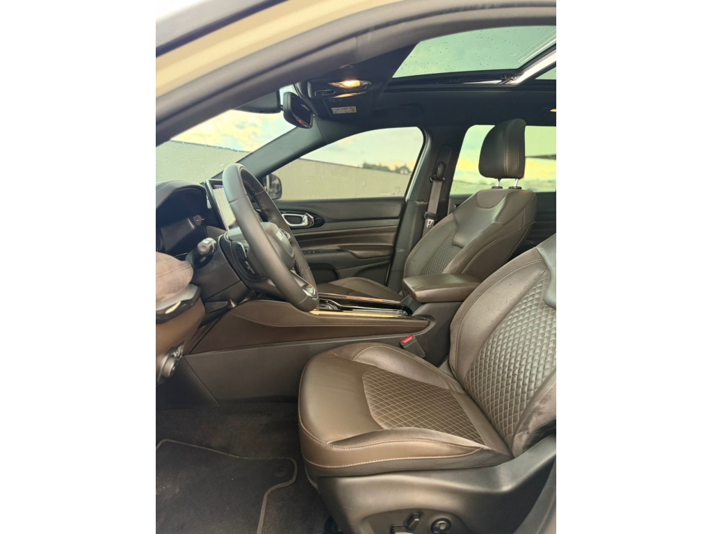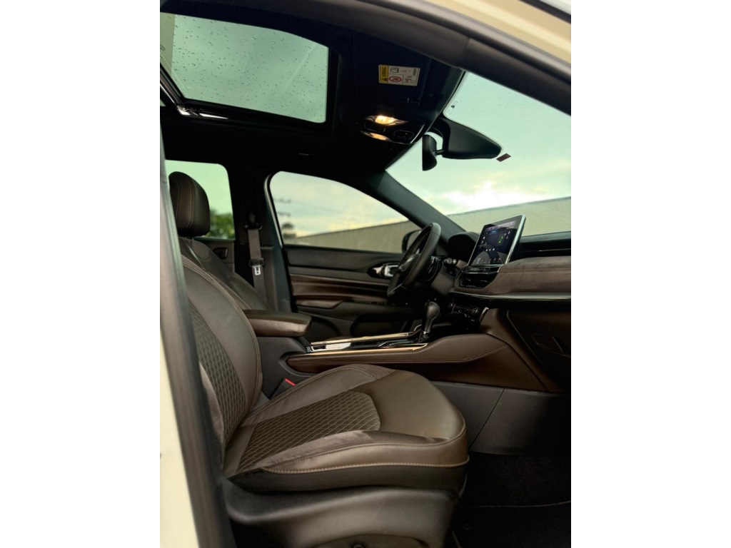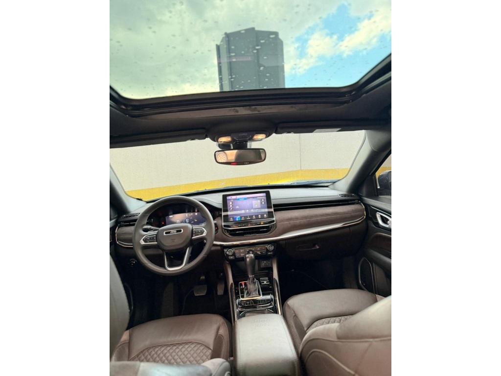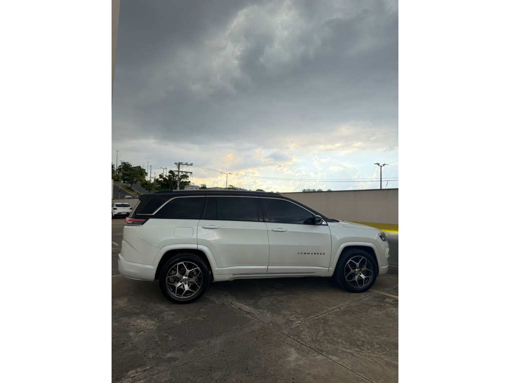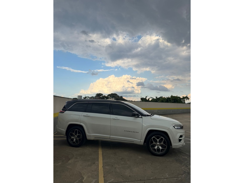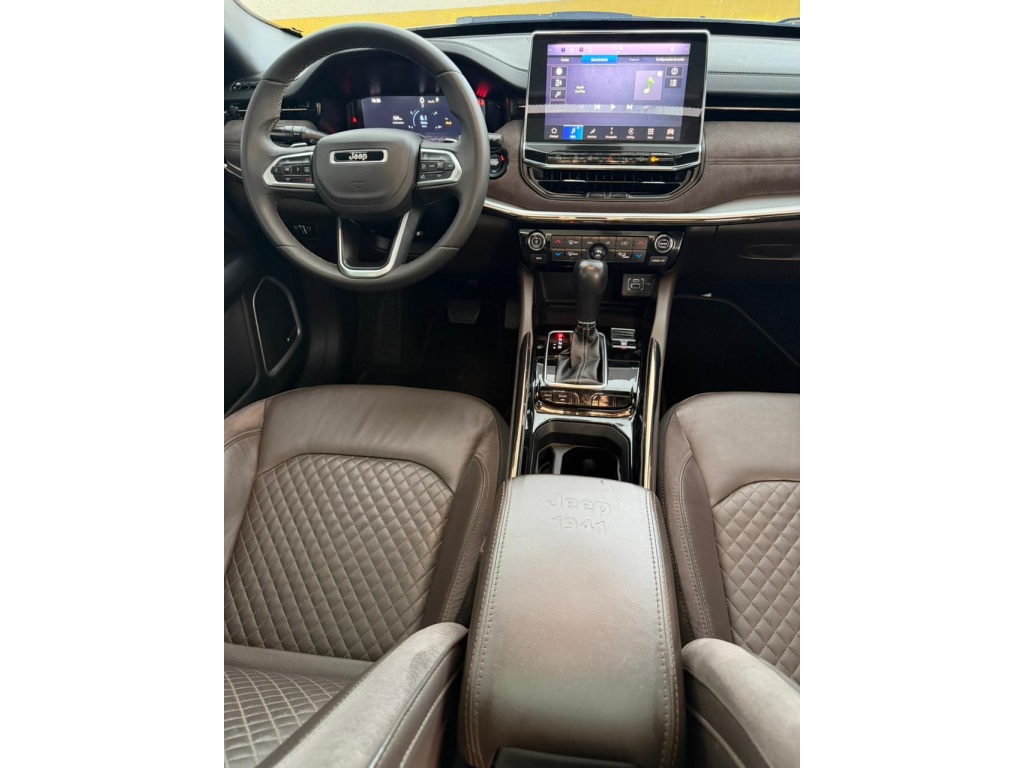 O Jeep Commander 2022 Overland Flex é a versão topo de linha com motor 1.3 Turbo (T270) de até 185 cv, destacando-se por 7 lugares, acabamento premium em couro/suede marrom e teto solar panorâmico. Traz som Harman Kardon, rodas aro 19", ADAS nível 2 (frenagem automática, ACC), central de 10,1 e bancos elétricos com memória.
